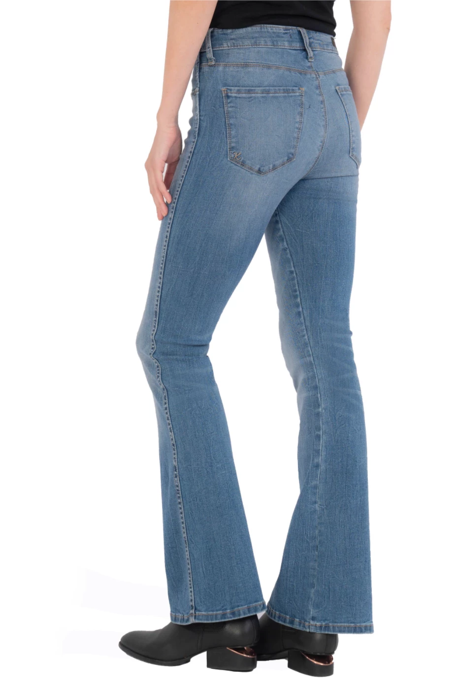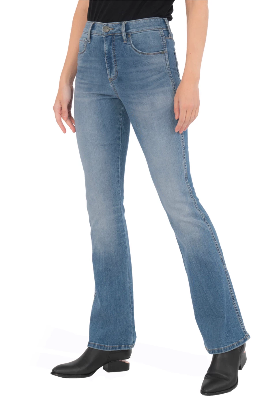 A casual classic, these floor-grazing flares flatter your figure with soft, faded stretch denim and Fab Ab front pockets that comfortably shape and slenderize.