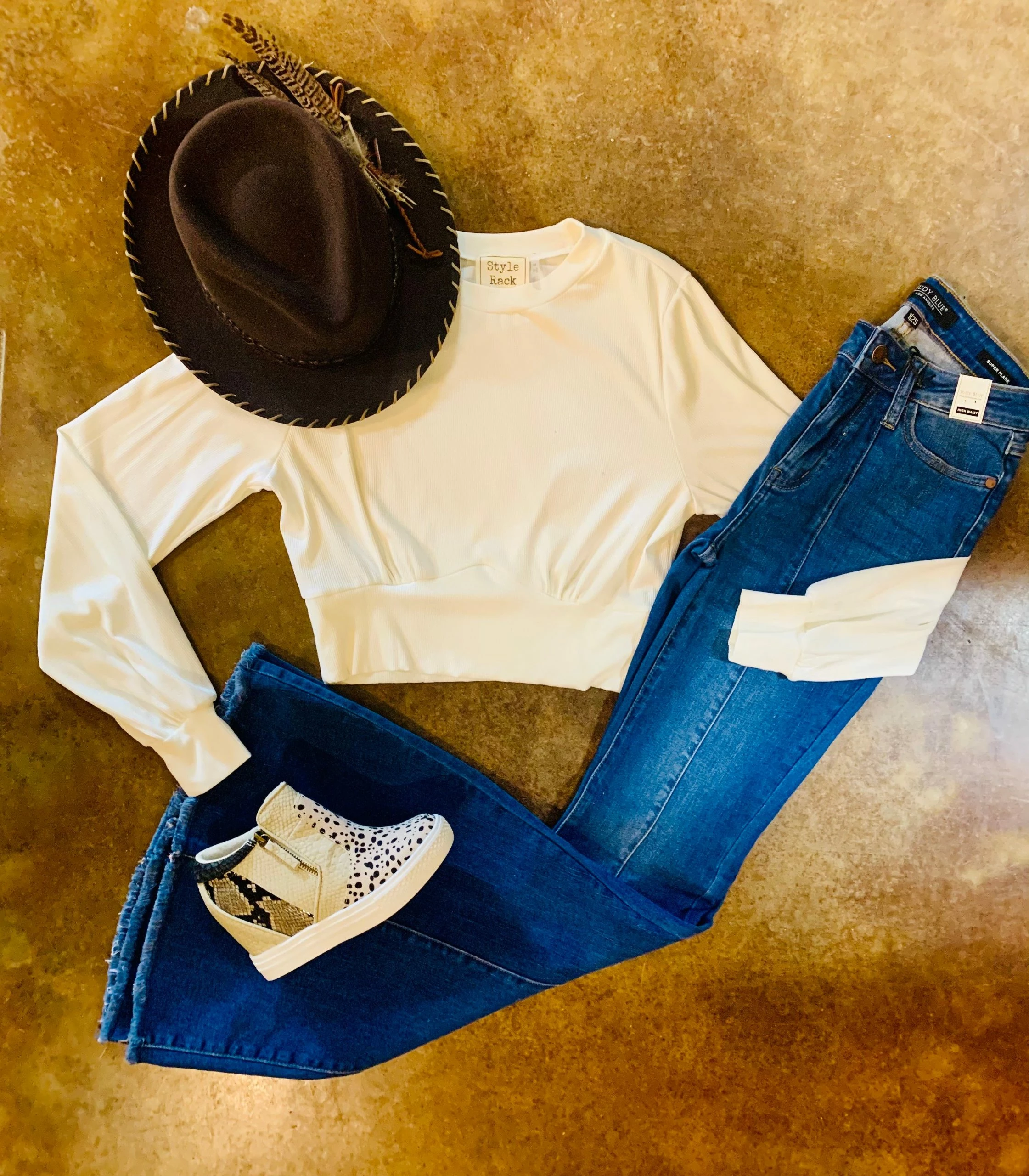 Our Flare To Explain Jeans are the perfect addition to any outfit. These bells feature working front and back pockets, along with belt loops. They have a seam that goes down the middle of the front and back, and have tons of stretch for your all day comfort.Â