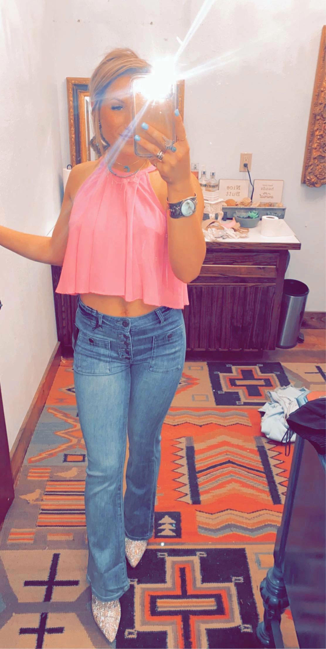 - Size & Fit: Inseam: 31″, Leg Opening: 20″, Rise: 10″, Silhouette: Flare