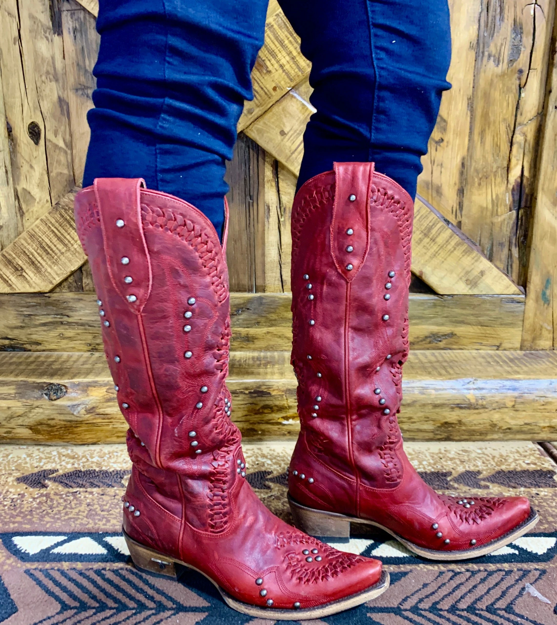 The red leather. The studs. The red intricate braided design. This boot is perfect in every way. There’s nothing more to say. We’re speechless. Completely speechless, and so will everyone else when you go around wearing these.