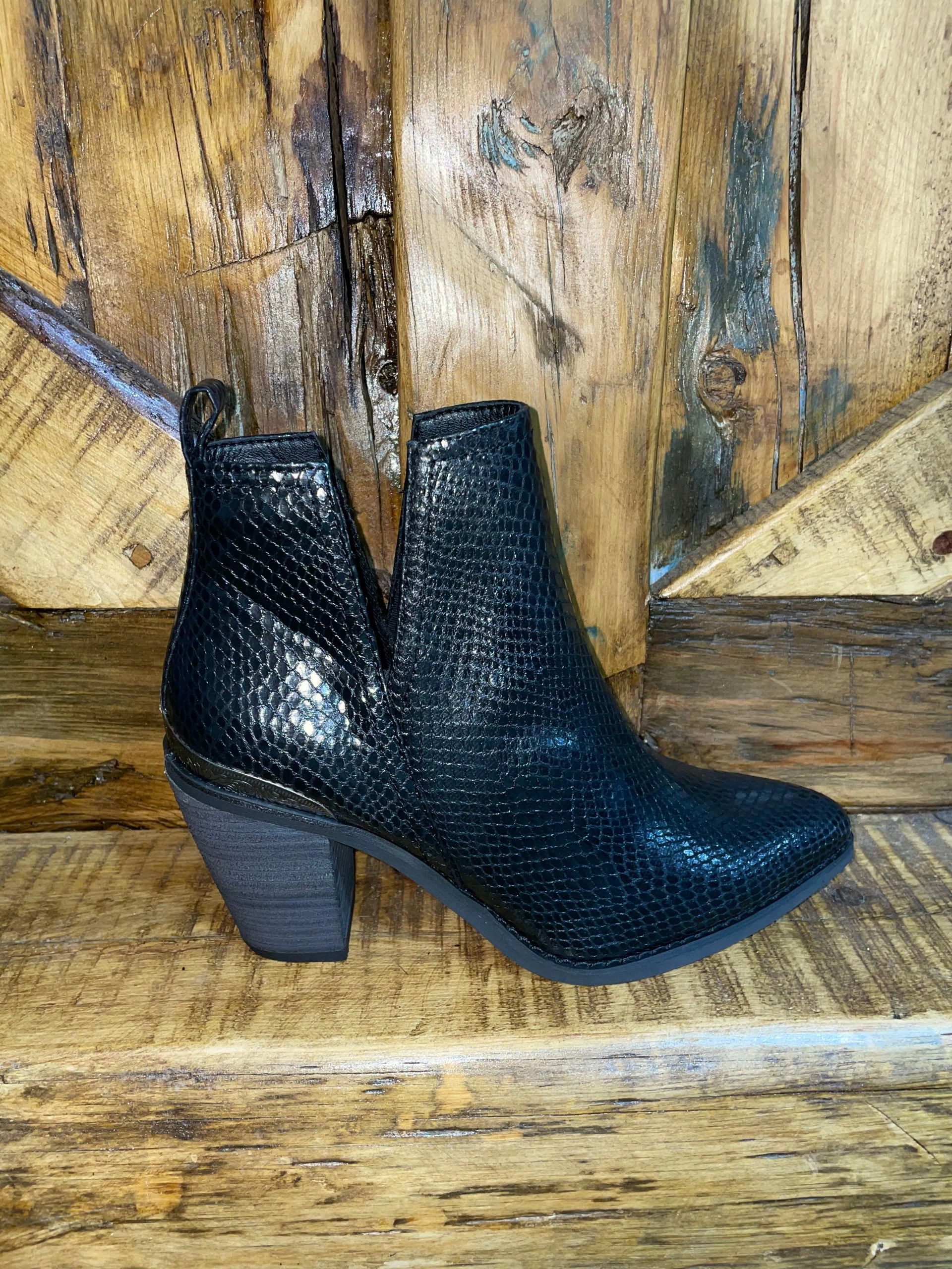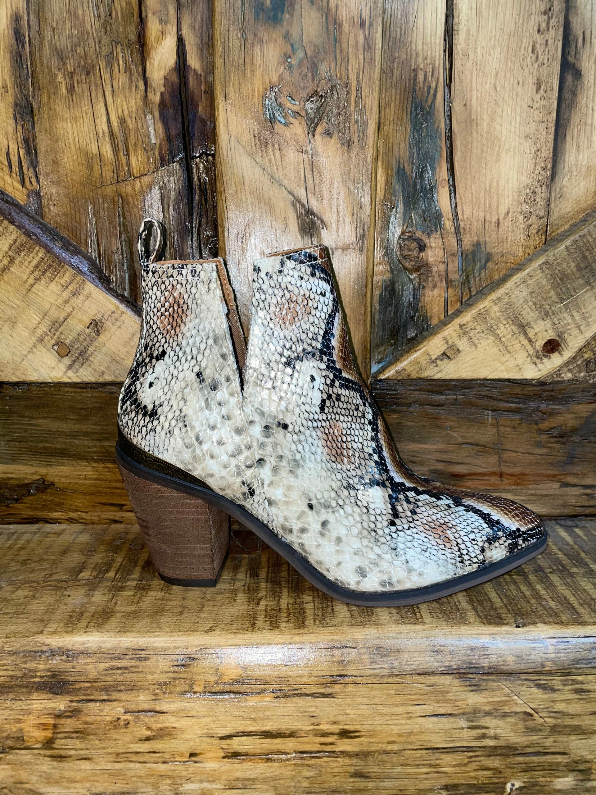 Kind of hard to sneak around in our “Snaking’ Around Booties” with the 3 1/4 inch heel but I’m sure someone can figure it out! Will you be running around the town in our new adorable faux snake print booties?